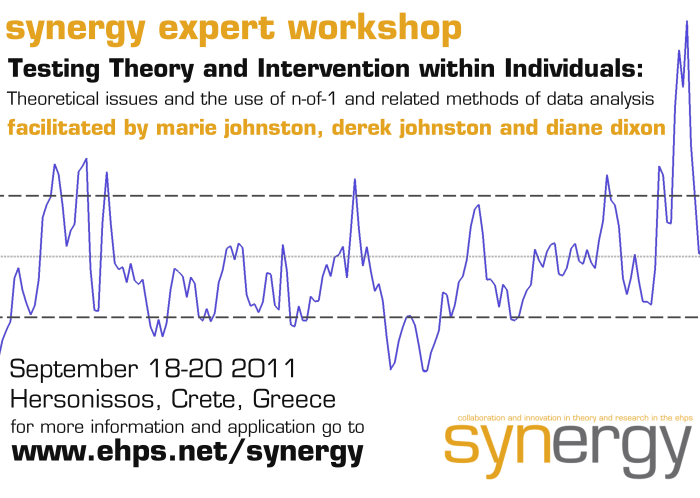 Many theories in health psychology attempt to explain changing aspects of individuals’ behaviour and most interventions attempt to change the behaviour of individuals. So, for example, theories suggests that people’s intentions to act are determined by their current beliefs or that levels of stress are determined by their current appraisal of the environment and interventions may seek to alter these beliefs or appraisals. However theories are mostly tested in between individual studies and it can be shown that theories that apparently apply across individuals do not apply within an individual, as they should. Likewise interventions are mostly tested in randomised trials involving many participants and the applicability of the intervention to the individual participant is difficult to determine.